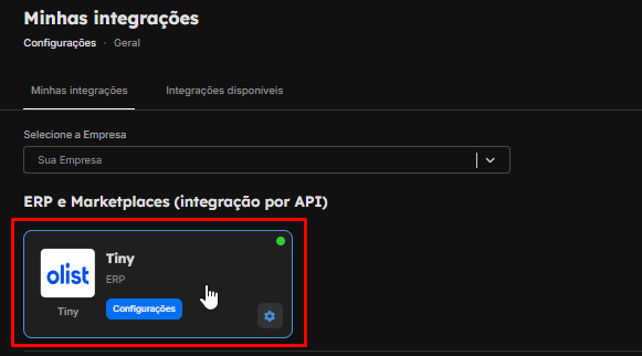 - Selecione o seu *ERP* ou a *SUA EMPRESA*