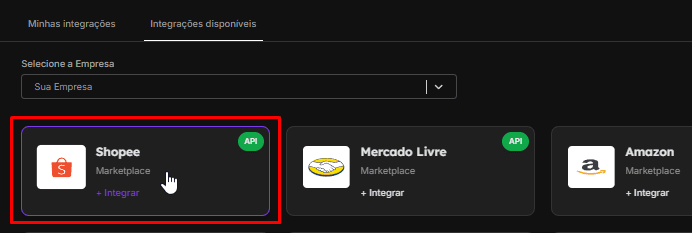 📌 Após a integração com o ERP, você poderá *selecionar os marketplaces em que opera* e integrá-los na plataforma.