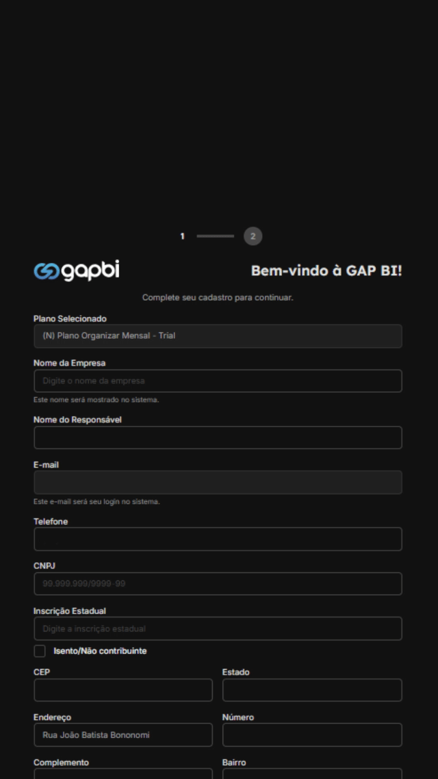 🚨 Atenção: Durante o cadastro, a plataforma vai perguntar como conectar a GAP BI ao seu sistema. Nesse momento, escolha a opção que mais se encaixa no seu cenário.
